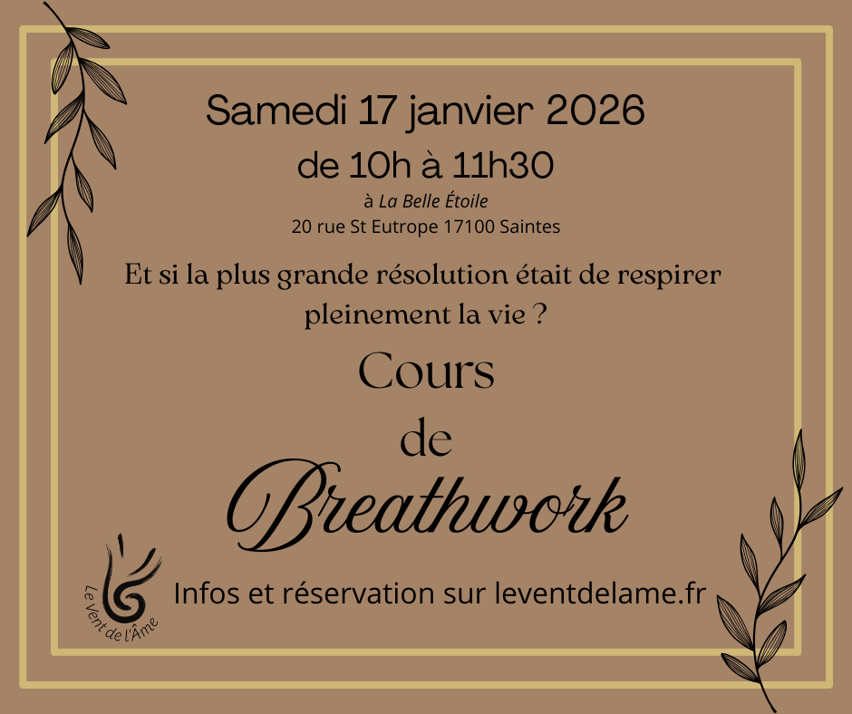 • Samedi 17 Janvier : séance de Breathwork avec Marjorie. Renseignements et réservation ici.