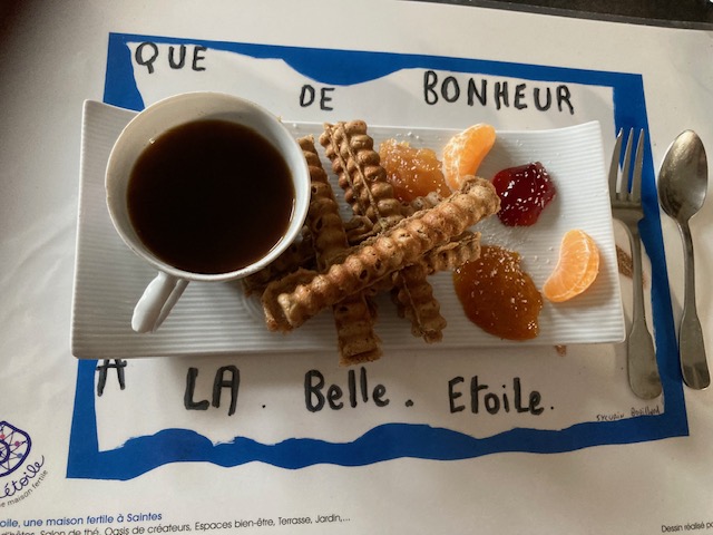 - Vendredi et lundi de 15h à 19h : Tricot'Thé", Tiss'O'Thé, Brod'O'Thé. Vous aimez les fils, soyez bienvenus à La Belle Etoile pour tisser, tricoter ou broder quelques brins de fils ensemble. Et même si vous venez sans vos fils, vous tisserez sans doute quelques liens le temps d'une pause gourmande !