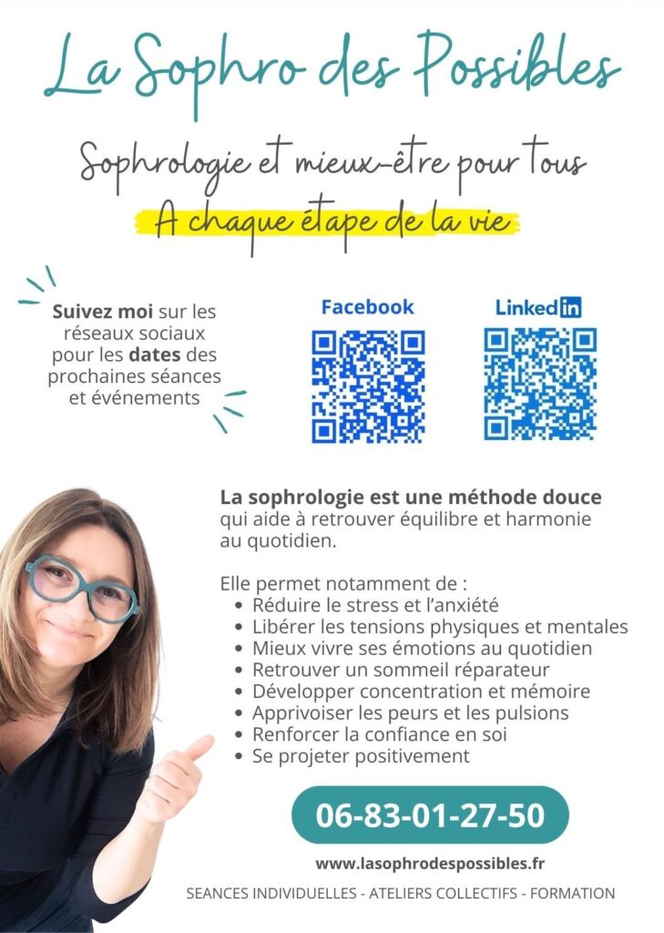 La sophrologie est pour moi un espace de pause, de recentrage et de ressourcement, accessible à tous, permettant d’harmoniser corps, émotions et énergie vitale pour un mieux-être durable ».