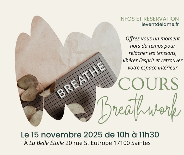 - Samedi 15 Novembre de 10h à 11h30 : séance de Breathwork avec Marjorie. Renseignements et réservation au 06 23 17 20 21.